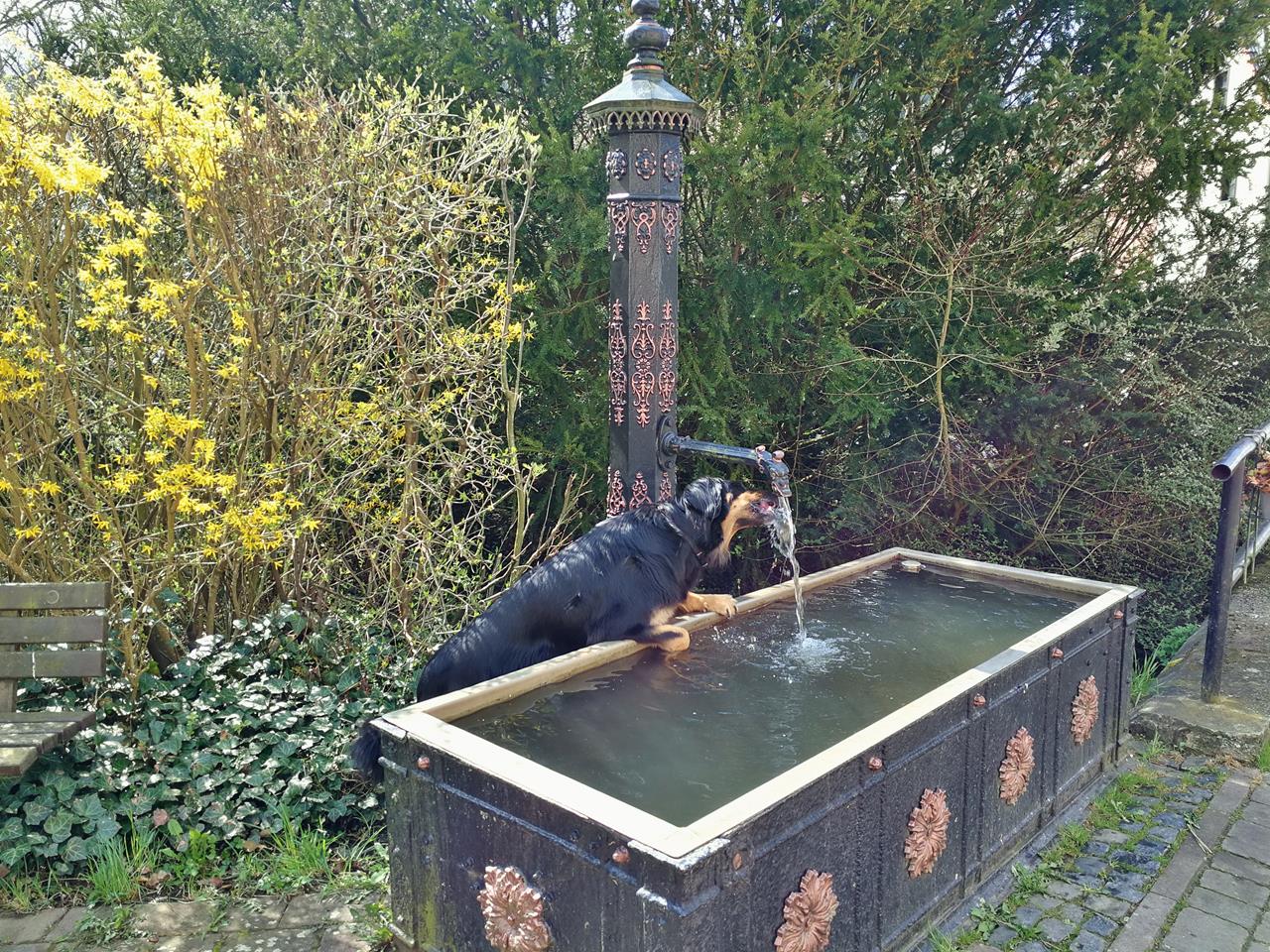 Doxi erfrischt sich im Kessachbach