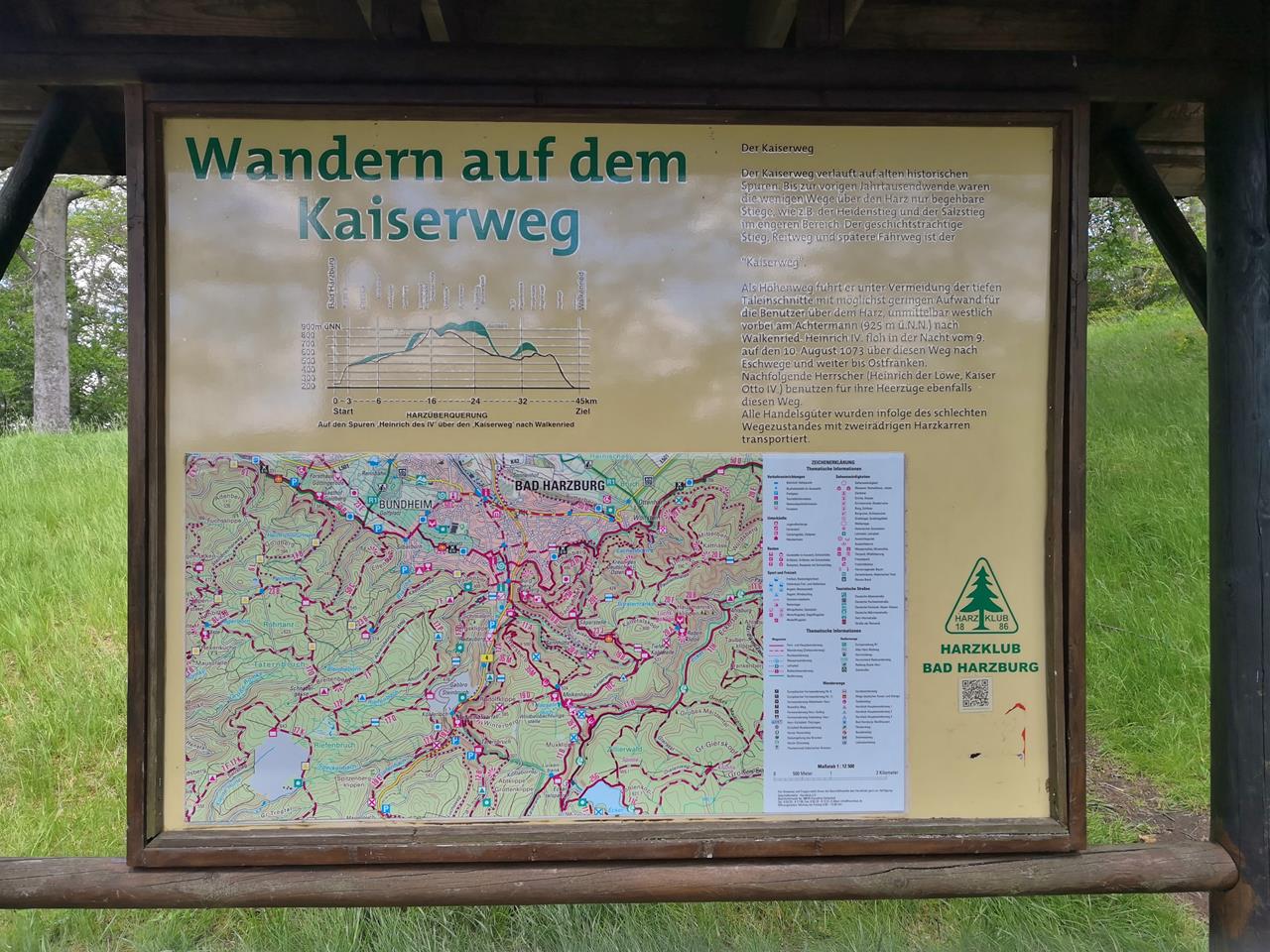Ich habe mir für den Nachmittag eine vielversprechende Wanderung auf dem Kaiserweg rund um Bad Harzburg vorgenommen. Zunächst geht es hinauf auf den großen Burgberg gleich neben dem Kurpark. Von der Spitze hat man einen tollen Blick auf die Stadt und auf das Harzvorland.