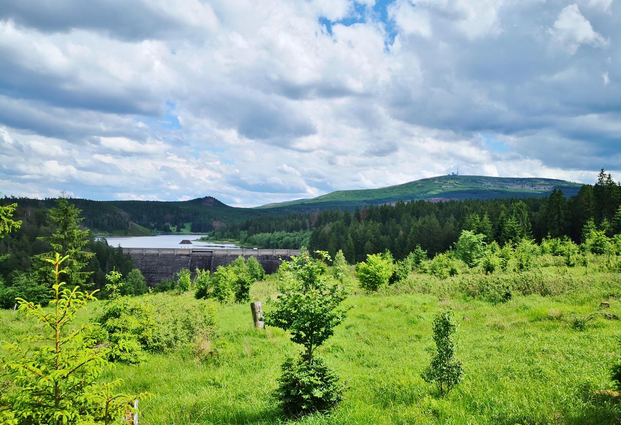 Weiter geht es auf Kaisers Spuren zum Grenzweg, wo wir auf die Eckertalsperre unterhalb des Brockens hinabblicken. Nach dem schönen Abstieg durch das Radautal kommen wir an einer Schwefelquelle vorbei. Ich probiere das Wasser und es schmeckt tatsächlich stark nach Schwefel.
