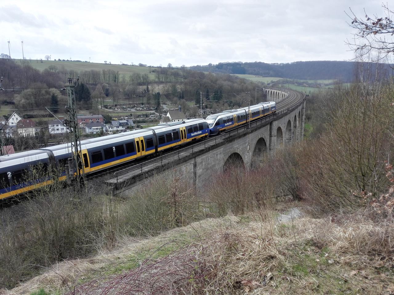 Heute ist der Viadukt Namensgeber für einen rund 30 Km langen Wanderweg rund um Altenbeken, der auch den „kleinen Viadukt“ rund 3 Km vor Altenbeken passiert. Bei ziemlich strammen Wind laufe ich mit Doxi Zweidrittel der Strecke und kürze dann Richtung Altenbeken ab.
