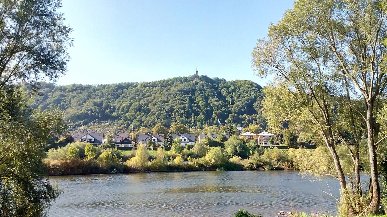 Blick auf die Mosel in Richtung der alten Römerbrücke. Links der Womo-Stellplatz.