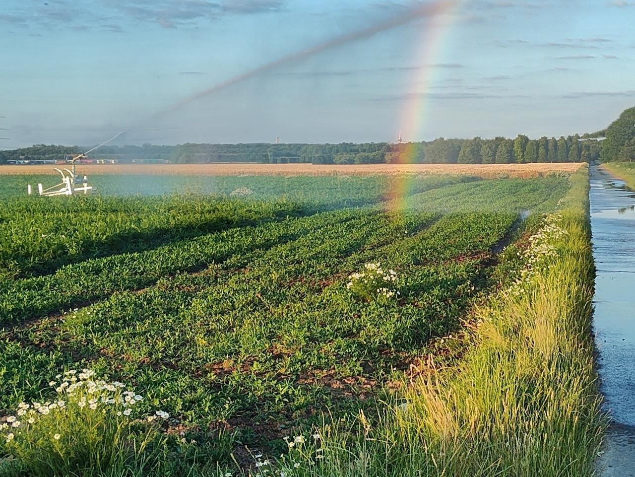 Bei uns im Feld: Sonnenuntergang tief im Nordwesten kurz vor 22:00