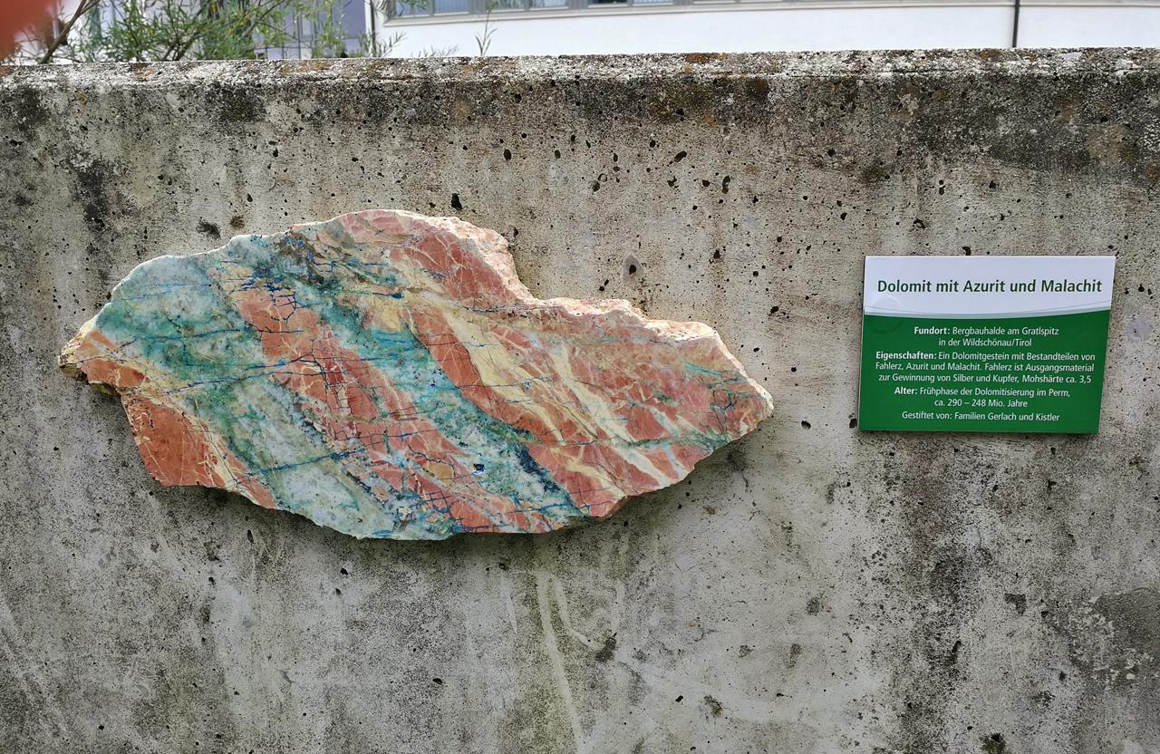 Auf dem Rückweg vom Reintal zu unserem Womo-Stellplatz komme ich in Partenkirchen an einem interessanten geologischen Lehrpfad vorbei, der mehr als 60 verschiedene Gesteinsarten aus zwölf Regionen in den fünf Alpenländern Frankreich, Italien, Schweiz, Österreich und Deutschland zeigt.