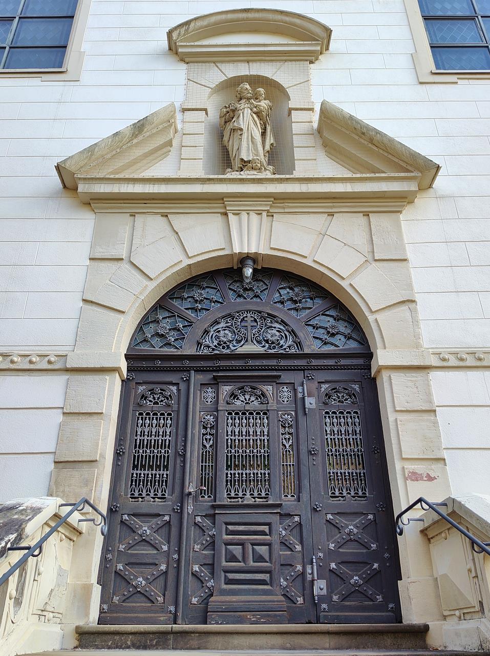 Dreigliedrige Tür, als Portal klassisch mit Säulen eingefasst