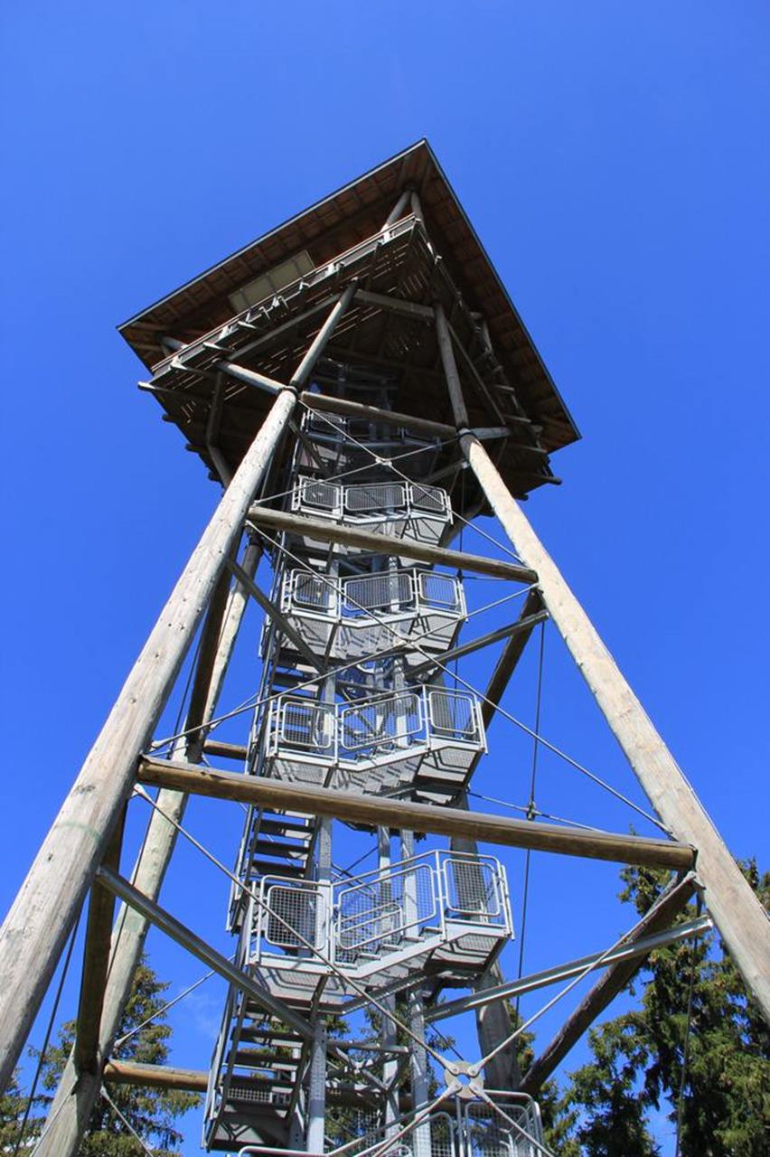 Von unserem Stellplatz an der Schluchseehalle ging es zunächst hinauf auf den Riesenbühl, dem Hausberg von Schluchsee auf 1.097 Meter ü.N.N.Dort erwartete uns der 37 Meter hohe Riesenbühlturm, der eine einzigartige Fernsicht über den Schluchsee und die angrenzenden Regionen bietet.
