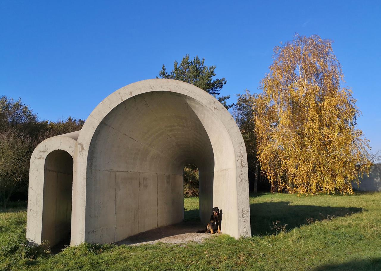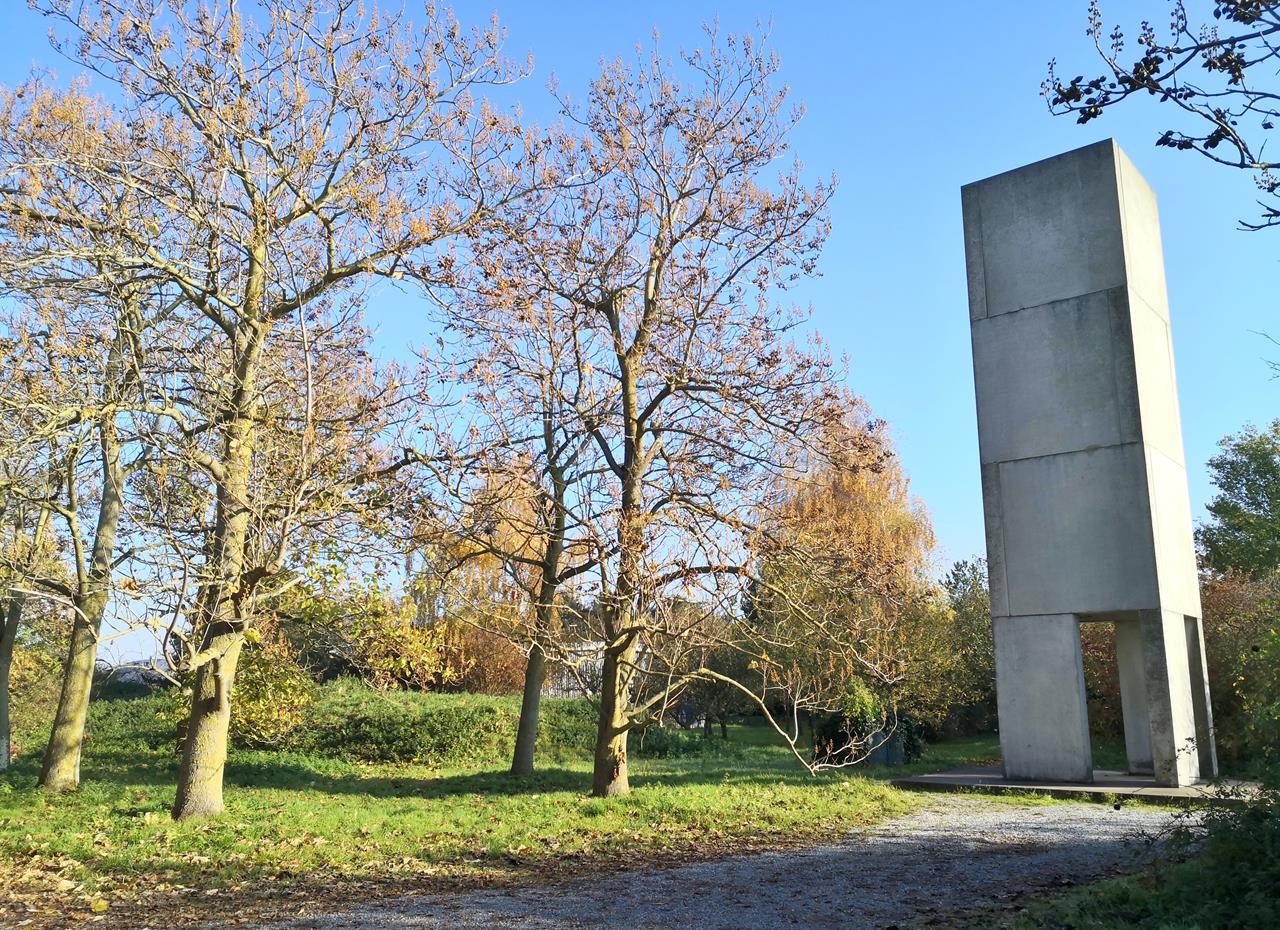 Mit Doxi habe ich heute die Raketenstation Hombroich auf den Kapellener Höhen zwischen Neuss-Holzheim und Kapellen besucht. Dort, vor den Toren von Düsseldorf, befindet sich das international anerkannte Museum „Langen Foundation“, das derzeit wg. des Corona-Lockdowns geschlossen ist.