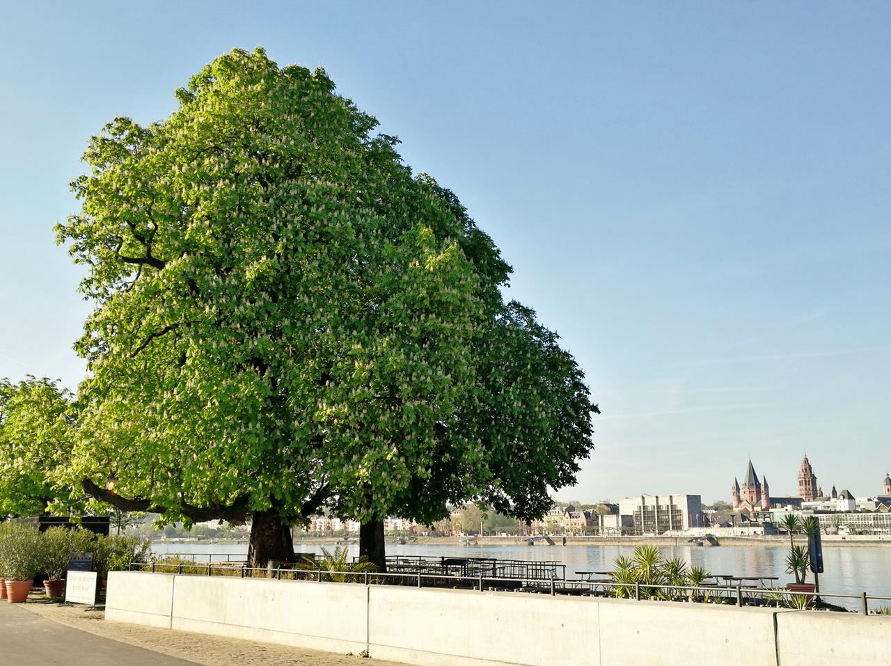 Wenn man die Skyline von Mainz richtig sehen will, muss man auf die andere Rheinseite nach Hessen rübermachen. Dort waren wir heute auf einer Drei-Brücken-Wanderung zwischen Rhein und Main unterwegs.