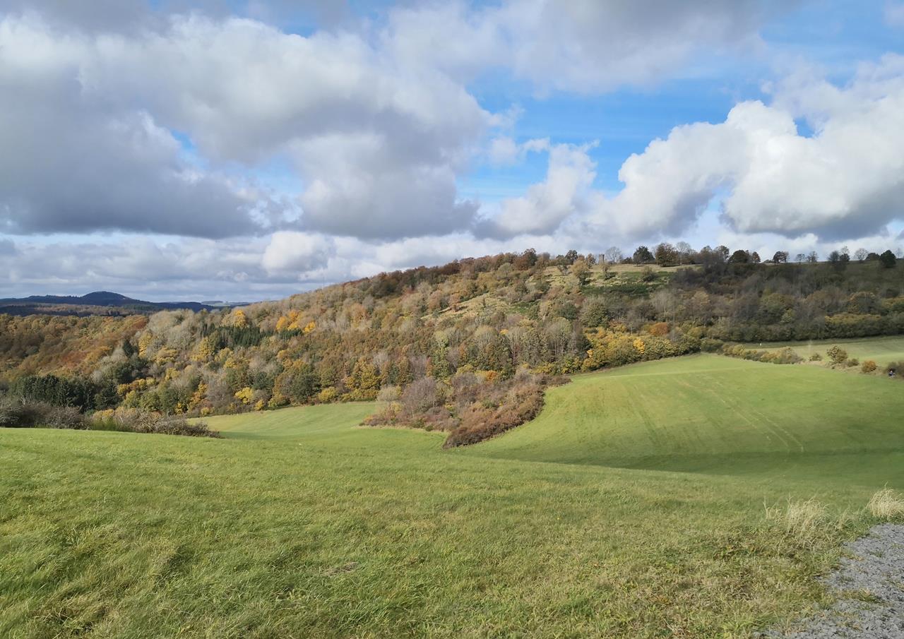 Das Naturschutzgebiet „Dauner Maare“ umfasst das Gemündener Maar, das Weinfelder Maar („Totenmaar“) und das Schalkenmehrener Maar, die vor rund 10.500 Jahren bei vulkanischen Dampfexplosionen entstanden sind. In dieser pittoresken Vulkanlandschaft war ich heute mit Doxi unterwegs.Das Gemündener Maar ist das nördlichste und kleinste der drei Maare. Es befindet sich in unmittelbarer Nähe des Dauner Ortsteils Gemünden. Bei seiner Entstehung blieb nur ein schmaler Grat aus Schiefer, Grauwacke und Sandstein zwischen dem Maar und dem benachbarten Liesertal stehen.