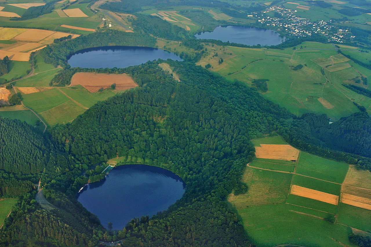 Die Vulkaneifel ist reich gesegnet mit Maaren, eingefallenen Vulkankratern, von denen sich einige mit Wasser gefüllt haben. Doch drei Maare in unmittelbarer Nachbarschaft, das gibt es nur bei Schalkenmehren in der Nähe von Daun.