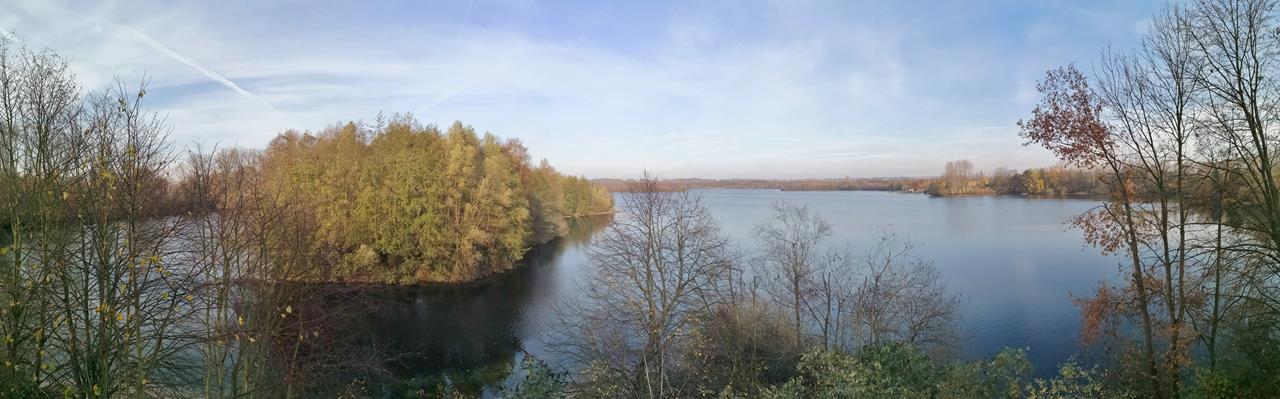 Wir umrunden den Elbsee, bis wir wieder zur Autobahn gelangen, und laufen dann am Rande des Autobahnzubringers unter ohrenbetäubenden Verkehrslärm wieder hinüber zum Unterbacher See. Obwohl man die Autobahn am südlichen Seeufer immer deutlich vernimmt, ist hier zu jeder Jahreszeit eine Menge los. Denn so viele vergleichbare Naherholungsgebiete gibt es im Osten von Düsseldorf einfach nicht …