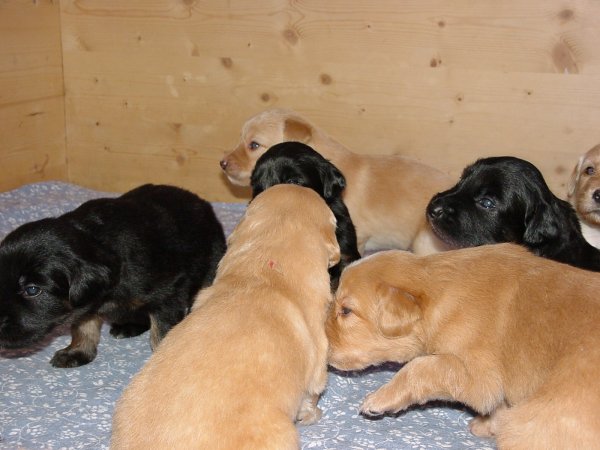 Hoppla, da turnen ja richtige kleine Hunde durch Bloxis Wurfkiste! Drei Wochen hat es gedauert: vom Schrumpel-Hamster zum Micro-Hovi.