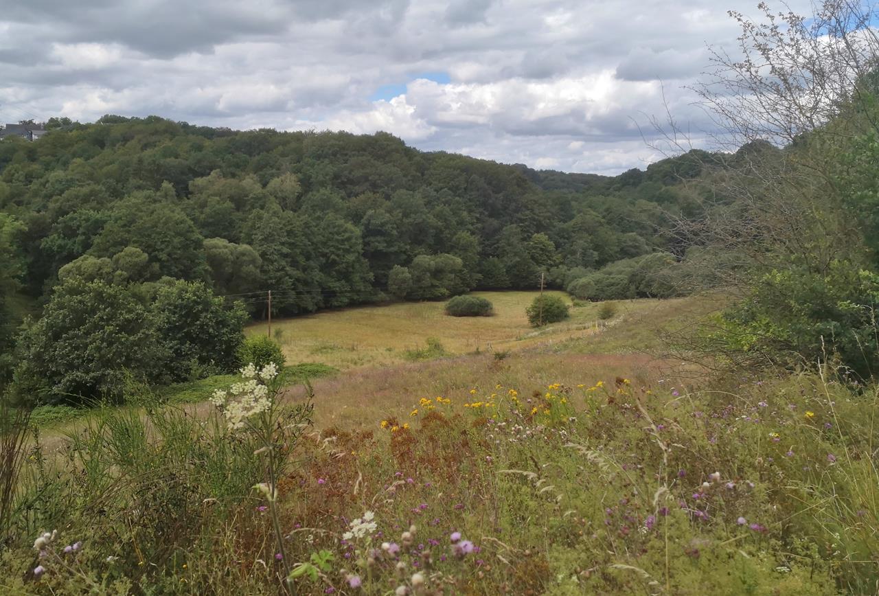 Anschließend laufen wir zwischen Feldern und Wiesen bis zum südlichsten Punkt der Tour kurz hinter der Ort Süchterscheid.
