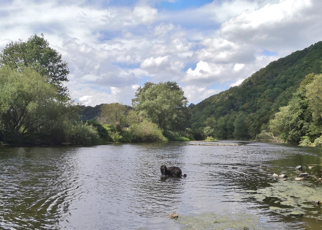 Wie schon am Dienstag vor einer Woche bin ich erneut an der Sieg unterwegs: Diesmal mit meiner Wanderfreundin Gabi auf dem 17 km langen Dreitälerweg, der unweit des hübschen Ausflugsortes Blankenberg beginnt. Und Doxi ist natürlich auch wieder mit von der Partie.