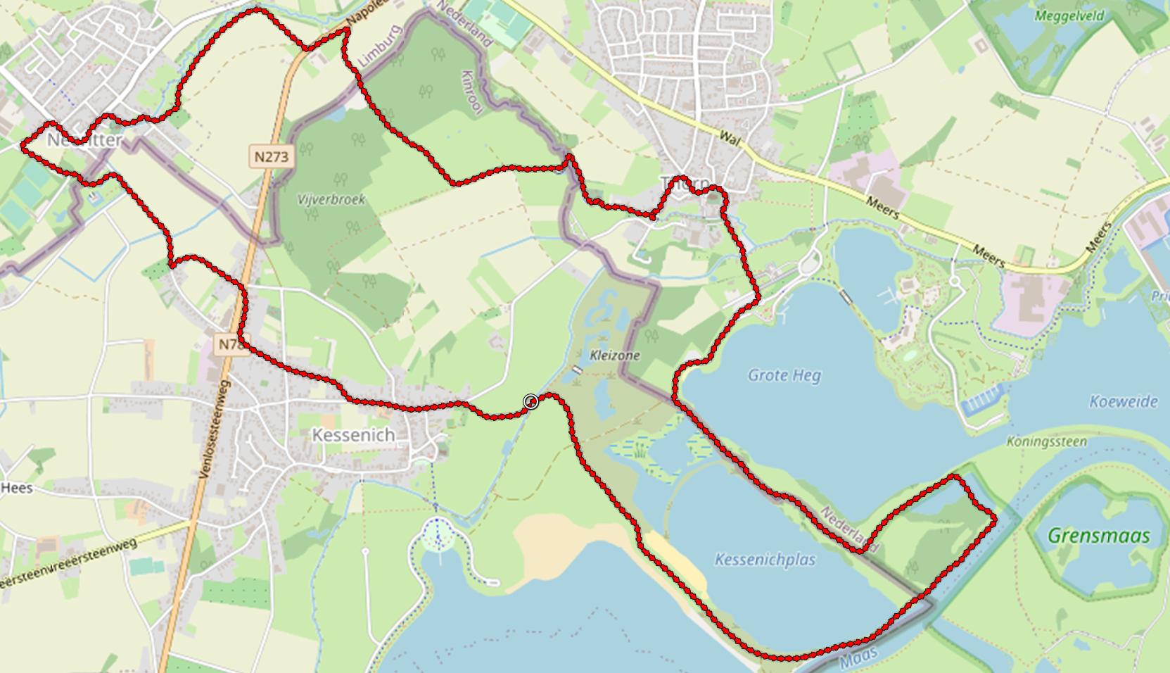 Die 16 km lange Wanderung führt mich zunächst in das urwüchsige Naturschutzgebiet Koningssteen zwischen der Maas und den drei Maasseen Vissenakkerplas, Kessenichplas und Grote Heg.