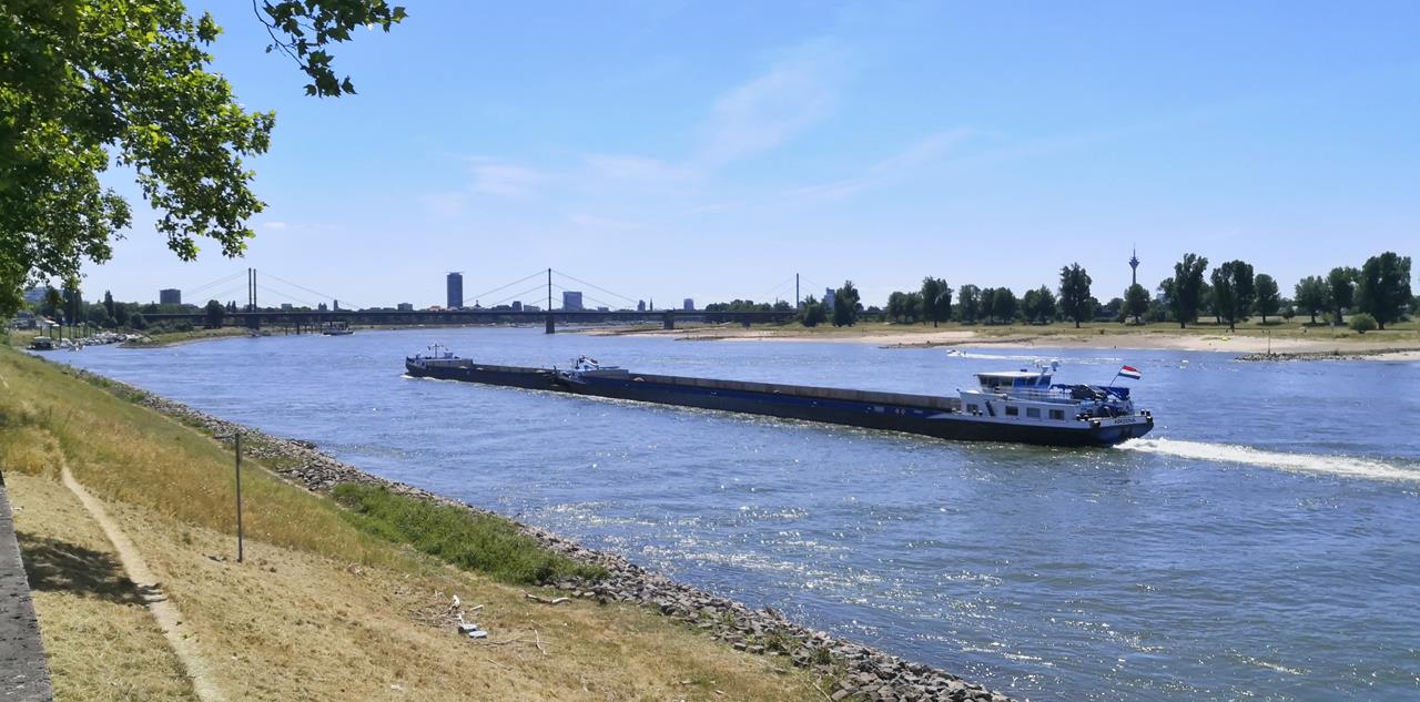 Blick von der Flughafenbrücke auf den Rhein