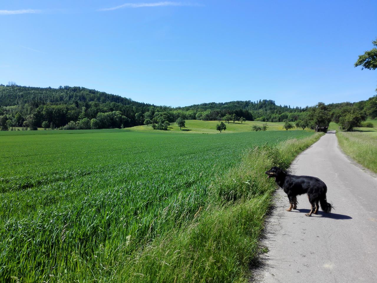 Weiter geht es über offenes Feld nach Sulzdorf. Die Sonne setzt uns mittlerweile ganz schön zu.