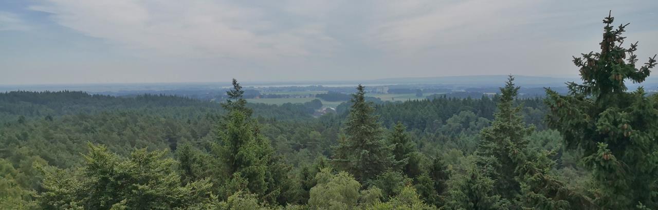Wir sind bei ständig steigenden Temperaturen rund vier Stunden auf der Tour unterwegs und passieren dabei einige der bekannten Sehenswürdigkeiten, darunter die Wallreste der frühmittelalterlichen Dersaburg, den schönen und großen Dammer Bergsee und den Aussichtsturm auf dem Mordkuhlenberg.
