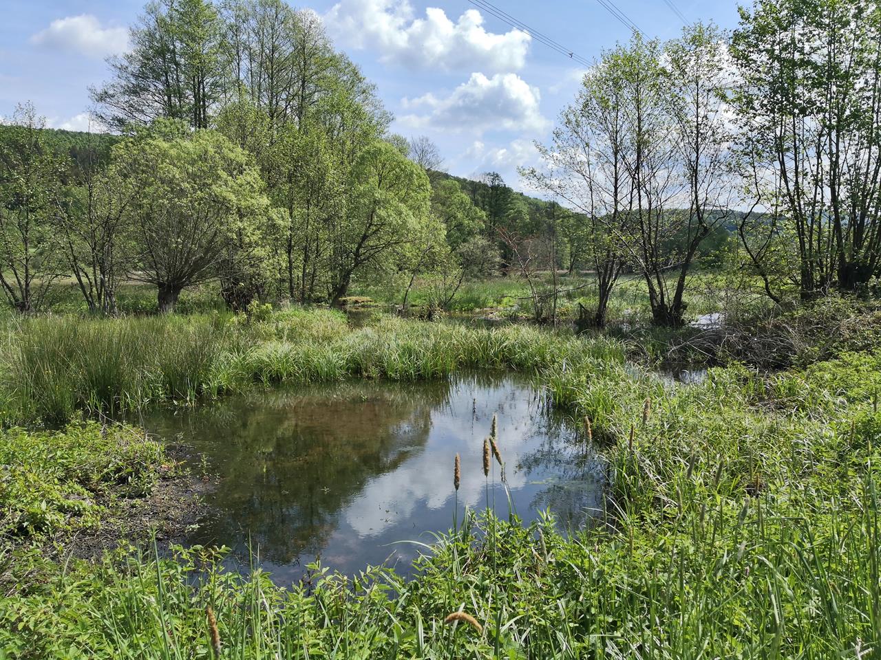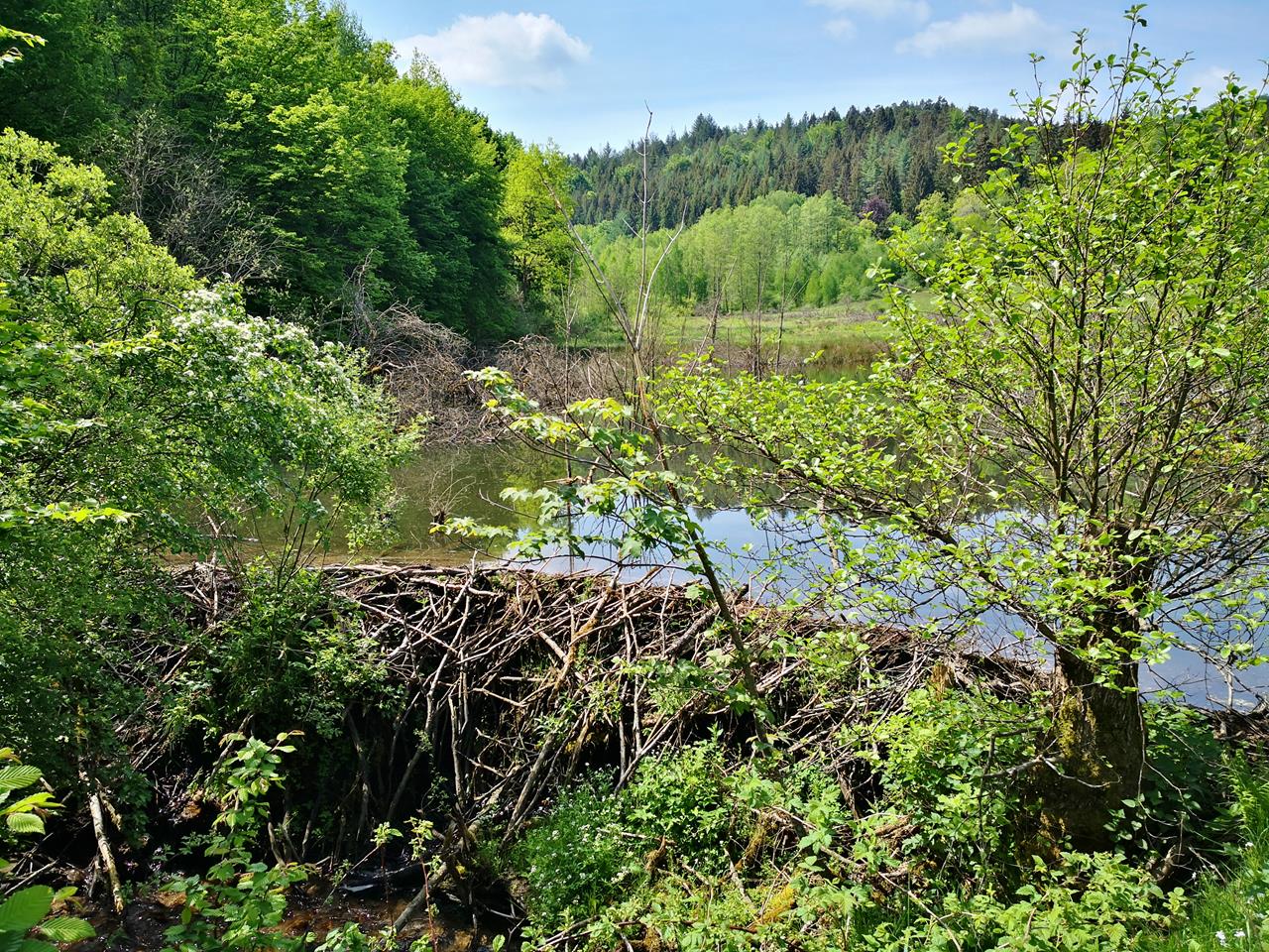 Dahinter öffnet sich vor uns das Lohrbachtal, in dem fleißige Biber den Lohrbach an verschiedenen Stellen aufstauen. Wir folgen dem Talweg durch die Auenlandschaft und erreichen kurz vor dem Ort Neuhütten einen schönen Freizeitsee.