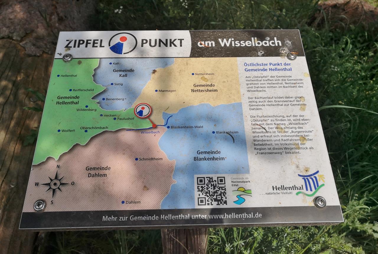 Weiter geht es bis zum Bahnhof Blankenheim Wald und von dort in Richtung Westen durch das Tal des Wisselbachs, der nach der langen Trockenheit der letzten Wochen praktisch kein Wasser mehr führt. In dem langgezogenen Tal stoßen die Gemeindegebiete von Hellenthal, Blankenheim und Dahlem aufeinander.