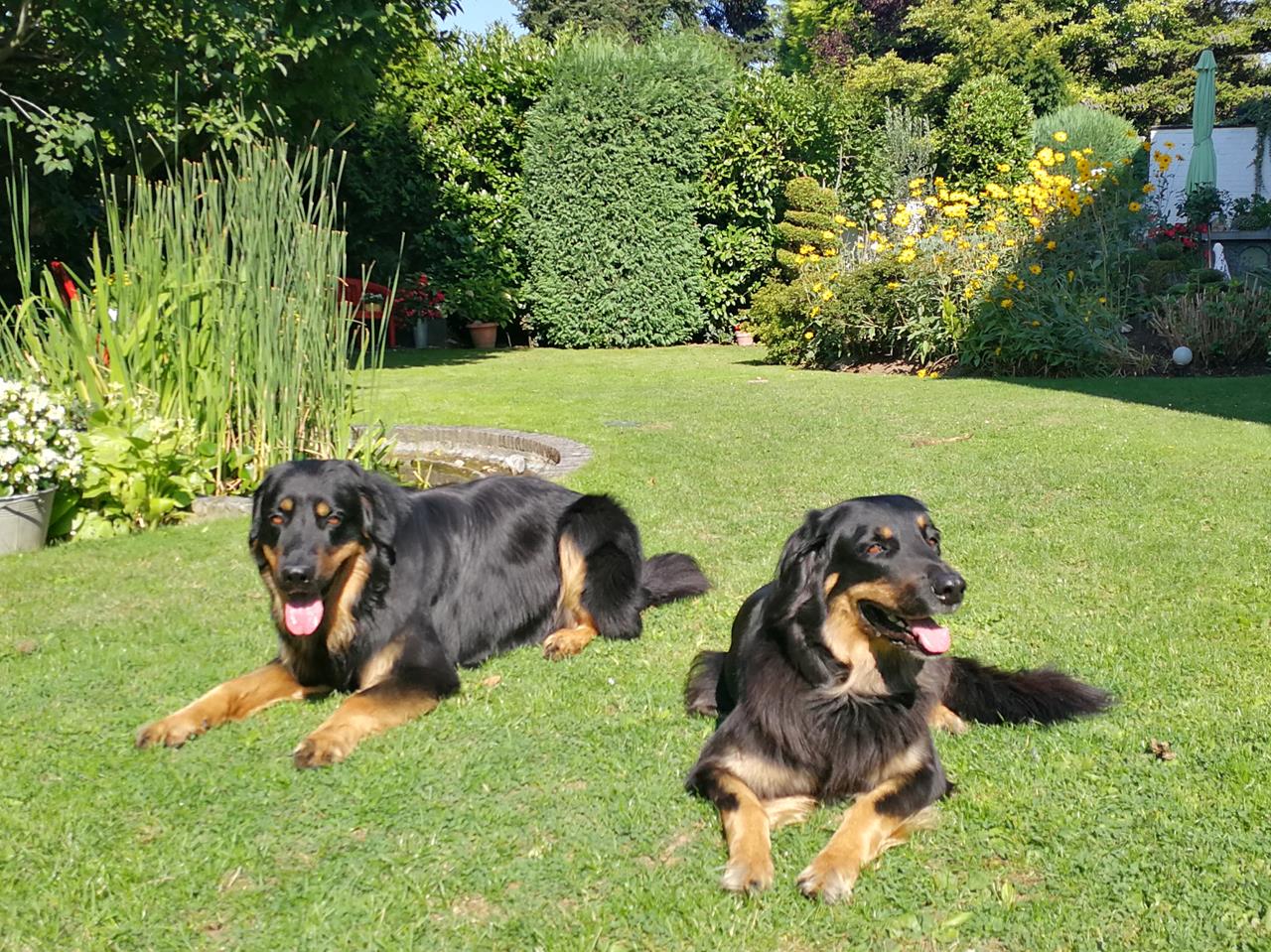 Damit Doxi ob der Präsenz eines Rüden in ihrem Revier nicht so rumzickt, hatten wir die Beiden bereits ein paar Tage vorher zusammengebracht. Da war Doxi tatsächlich zunächst ganz schön knurrig, aber heute war es dann schon kein Problem mehr.