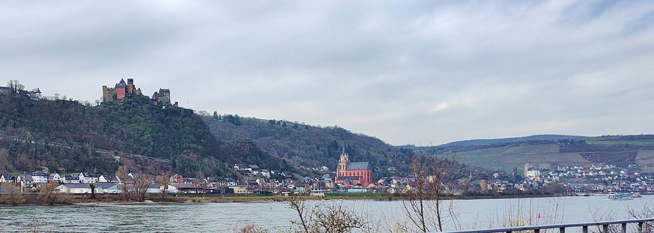 In westlicher Richtung geht es dem Rhein folgend zunächst vorbei an Eltville, Oestrich-Winkel und Rüdesheim – alles Wein-Orte im Hessen- Gau, an deren Besuch ich schöne Erinnerungen habe.Dann macht der Rhein einen Knick Richtung Norden und schlägt den Weg in das enge Mittelrheintal ein.