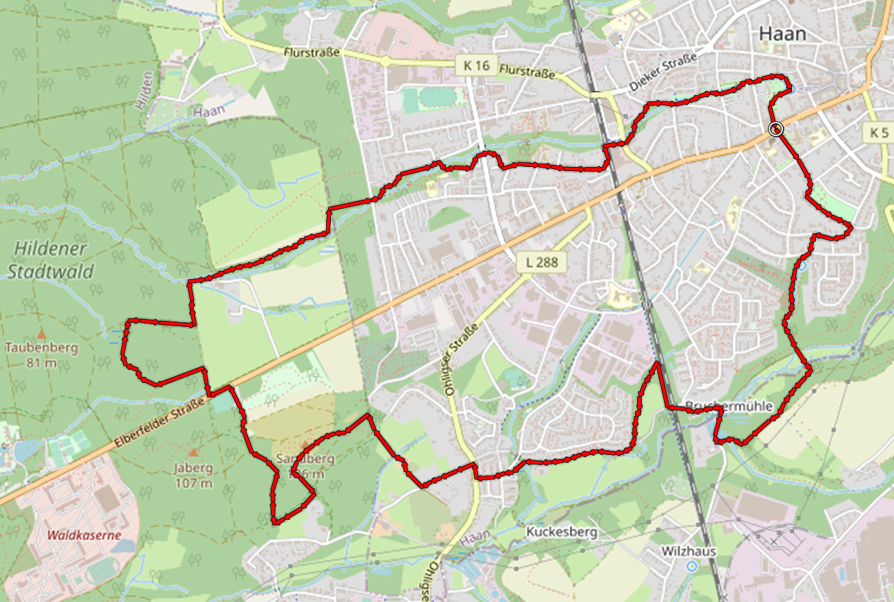 Dort drehen wir um und laufen auf dieser 12 km langen Tour durch Haan zurück zu unserem Startpunkt. Von der städtischen Bebauung sehen wir dabei nur wenig, weil der Weg geschickt durch verschiedene Parks und Grünanlagen der Stadt führt. Eine wirklich gelungene kleine Tour.