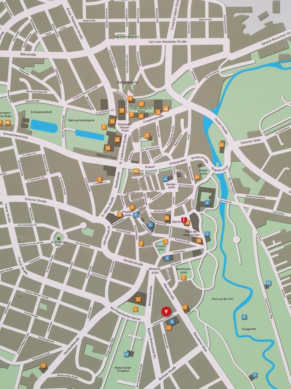 Bei so viel kultureller und historische Bedeutung verwundert es nicht, dass Weimar ein Anziehungspunkt für Touristen aus aller Welt ist. Die Stadt ist ganz schön voll, doch mit meinem Fahrrad komme ich überall gut hin. Es gibt viel zu entdecken und zu sehen. Eine wirklich schöne und inspirierende Stadt, finde ich.