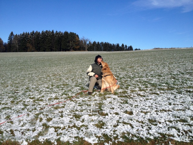 Dann kamen wir an die Stelle der Verleitung, die aufgrund des Schnees gut sichtbar war, und Bellis blieb auf der Fährte. Super! Beim letzten Gegenstand war ich froh, dass das Ziel erreicht war.