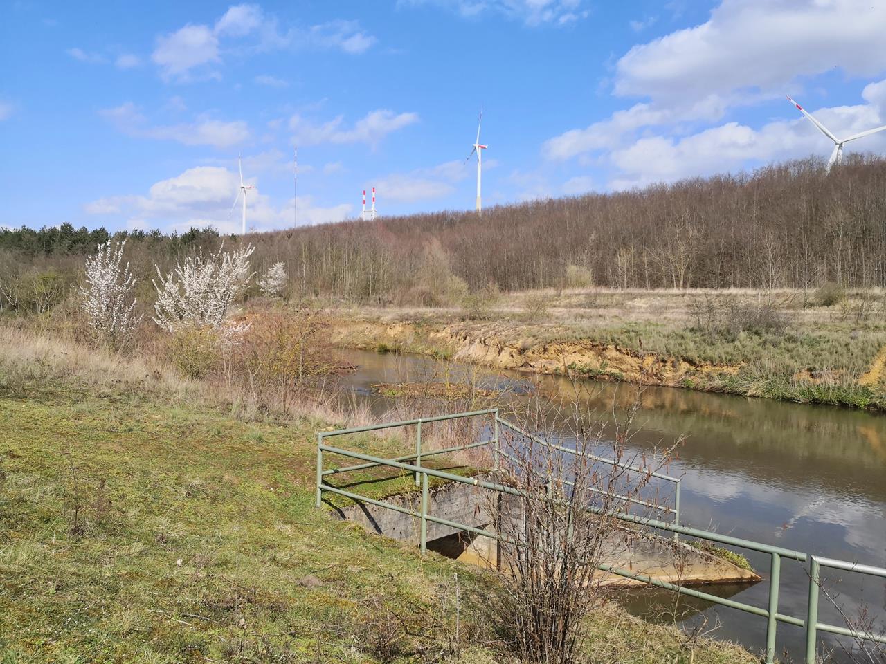Eine landschaftlich interessante Tour zwischen alten und neuen Tagebauen und rekultivierten Abraumhalden bin ich heute mit Doxi im Süden von Grevenbroich gelaufen. Die 22 km lange Wanderung beginnt an einem Seitenarm der Erft, der früher die Wassermühle Gustorf antrieb.