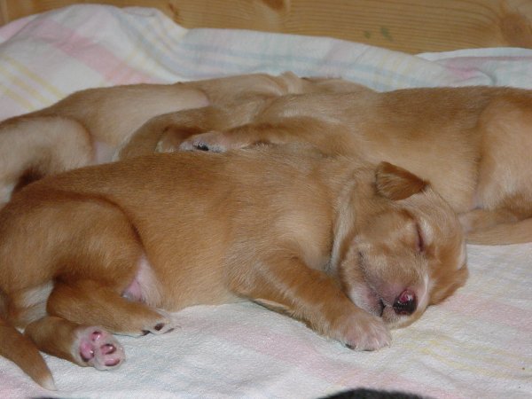 Die Beinchen der Welpen werden mit jedem Tag etwas kräftiger. Es wird sicher noch eine Woche vergehen, bis die Kleinen richtig laufen können.