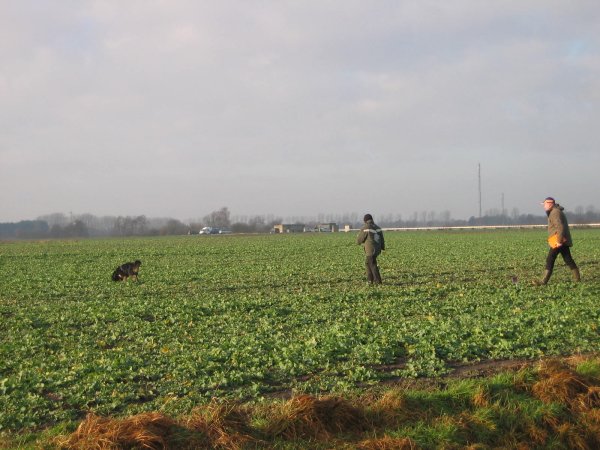 Die nächsten Tage verbrachten wir mit unserer Gruppe jeweils von 9:00 bis 17:00 im Gelände. Das Mittagessen (sehr lecker) wurde mittags zu einem Treffunkt gebracht und dort Mittag gehalten. Die Teilnehmer waren trotz Kälte (gefühlte -4 Grad) begeistert bei der Sache. Jeder konnte für seinen Hund mehrere Fährten legen. Allerdings ließ der Bodenfrost nur kurze Fährten zu, so dass für Bloxi keine Ausdauerfährten gelegt werden konnte. Ich legte deshalb für Bloxi einfach mehrere Fährten aus.