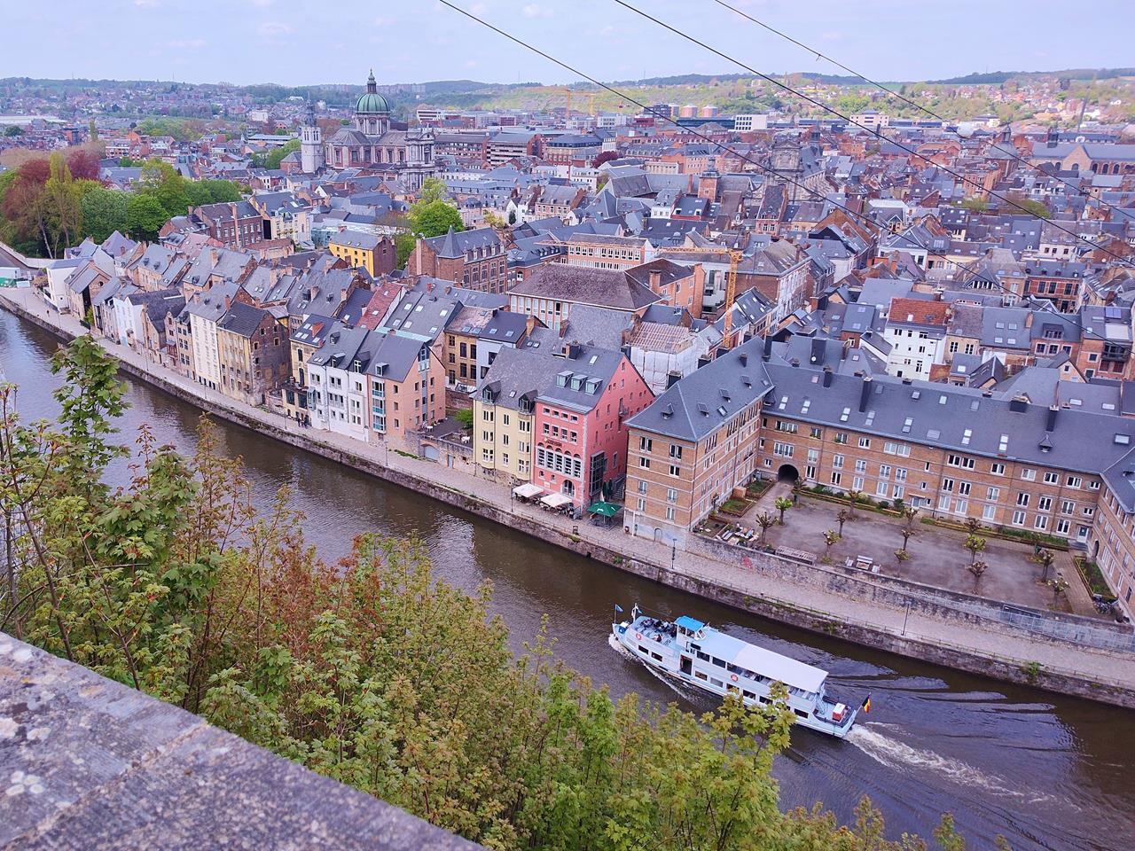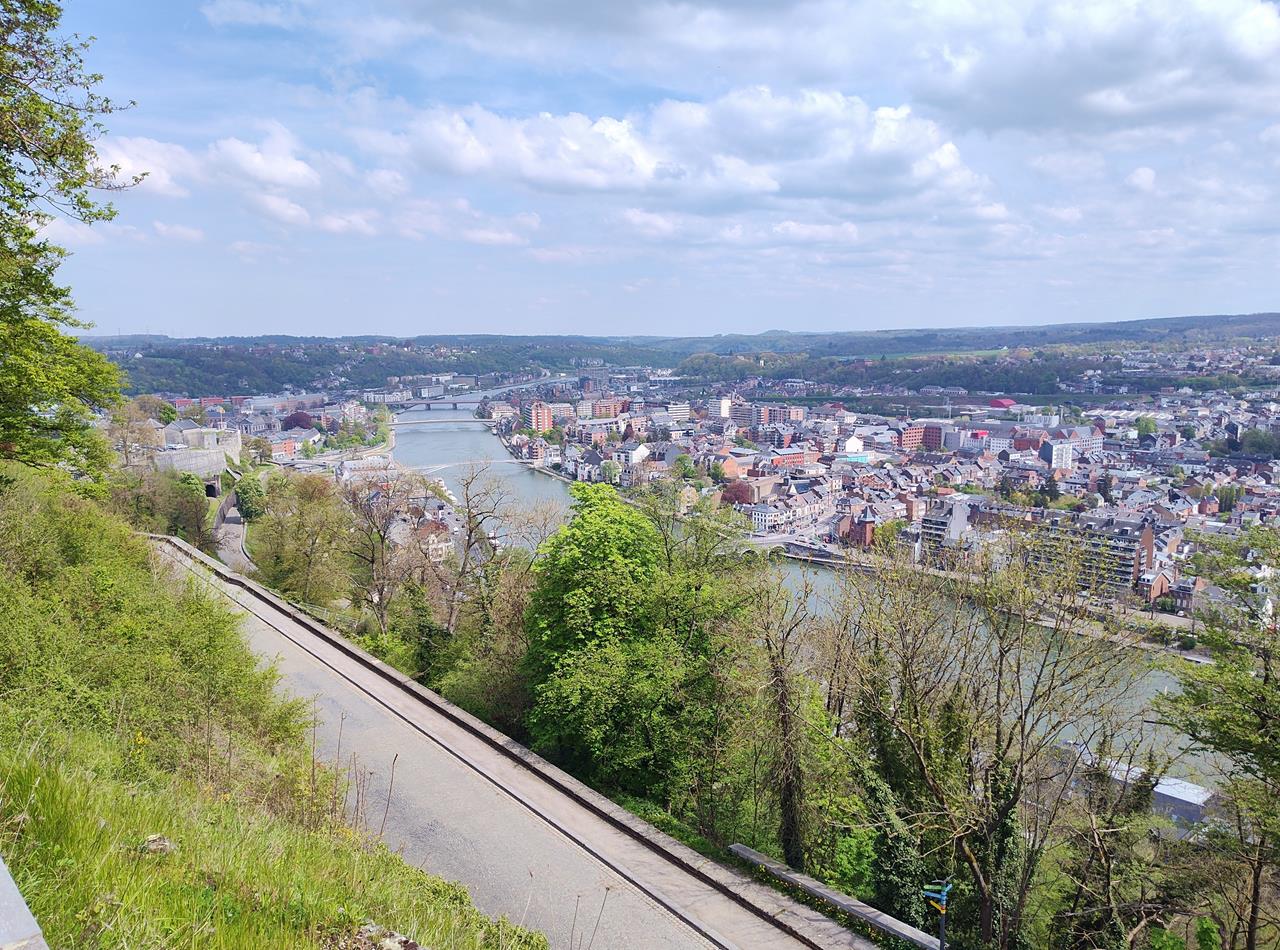 Von oben hat man einen tollen Blick auf die Altstadt. Und das bei diesem Kaiserwetter heute am letzten Tag des Aprils. Kein Wunder, dass an diesem Sonntagnachmittag viele Menschen in Namur unterwegs sind.