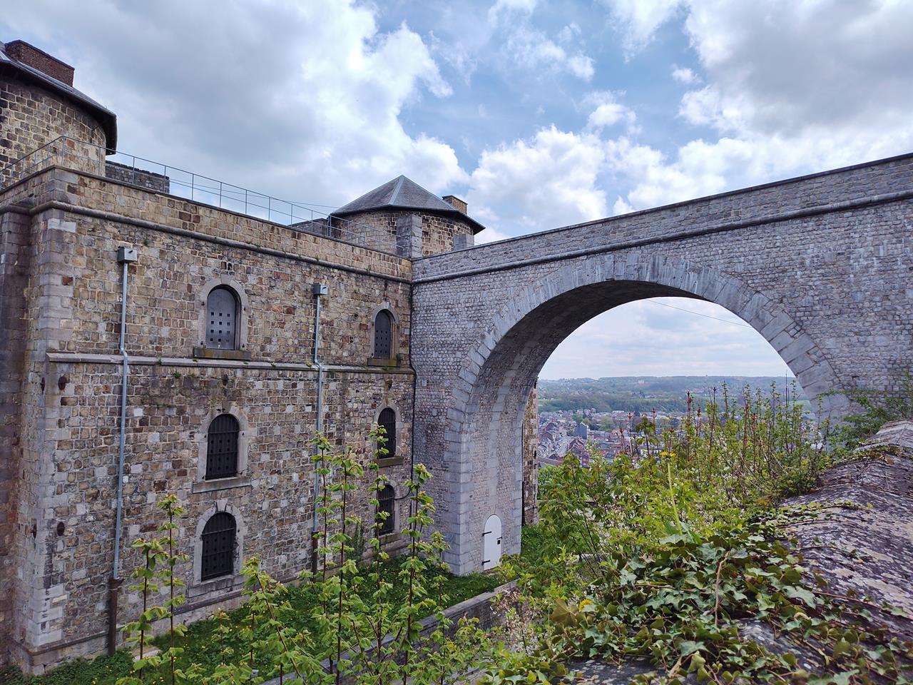 Die sehenswerte Altstadt wird überragt von einer riesigen Festung auf dem Bergsporn über dem Zusammenfluss von Maas und Sambre. Die Anlage ist größtenteils im Berg eingegraben und zählt mit einer Gesamtfläche von rund 80 ha zu den größten Festungsanlagen in Europa.