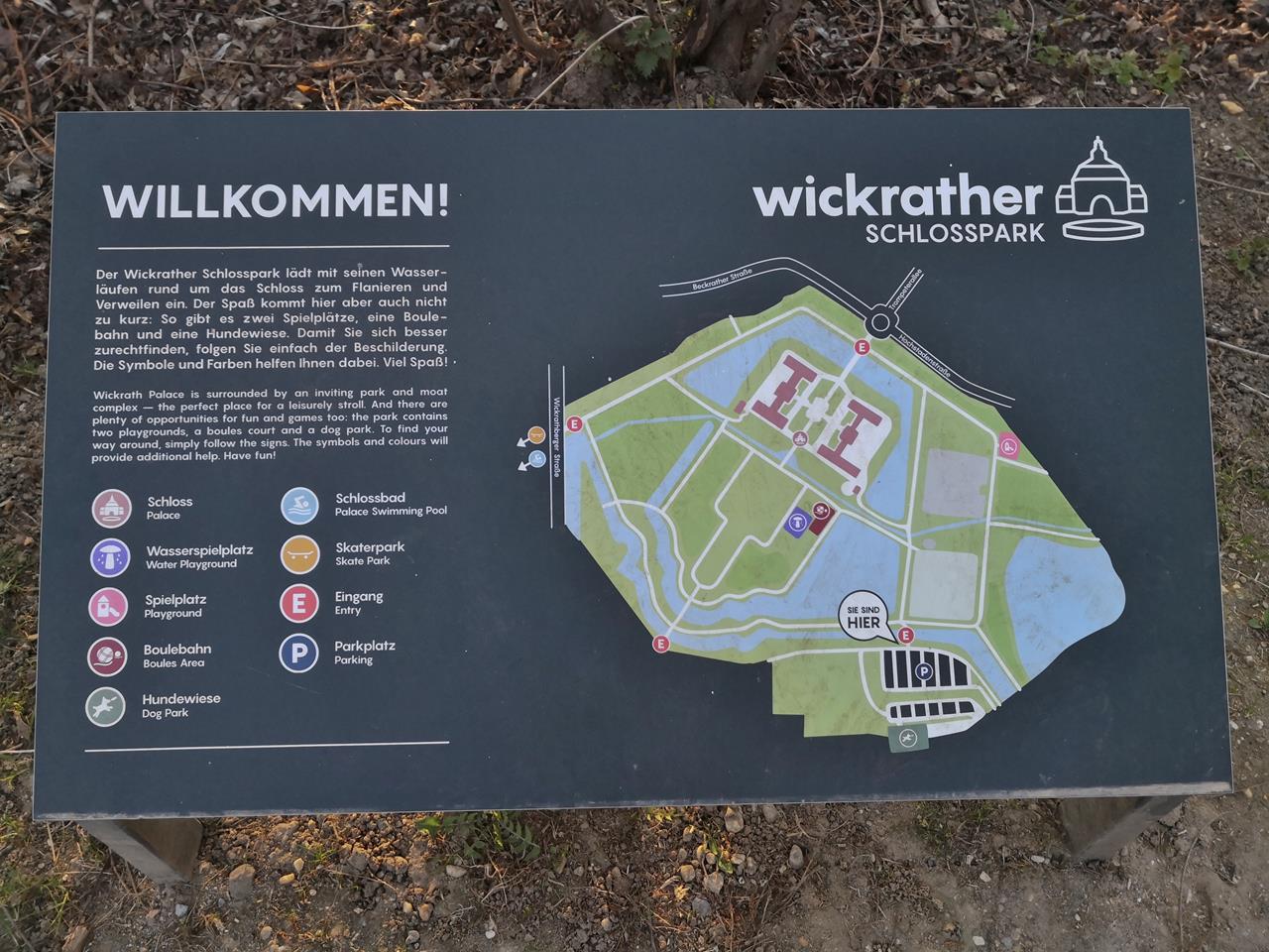 Die letzte Station meiner zweieinhalbwöchigen Reise und Tourabschluss ist das Schloss Wickrath, wo die Stadt Mönchengladbach einen kostenlosen Womo-Stellplatz direkt am Schlosspark anbietet.