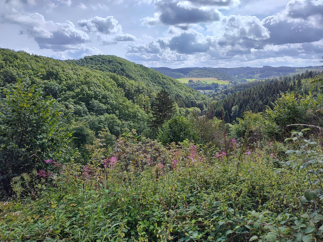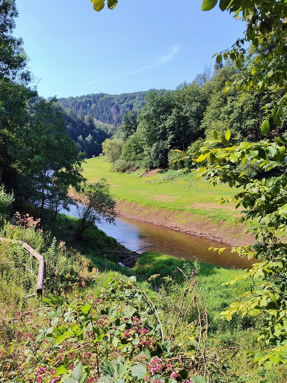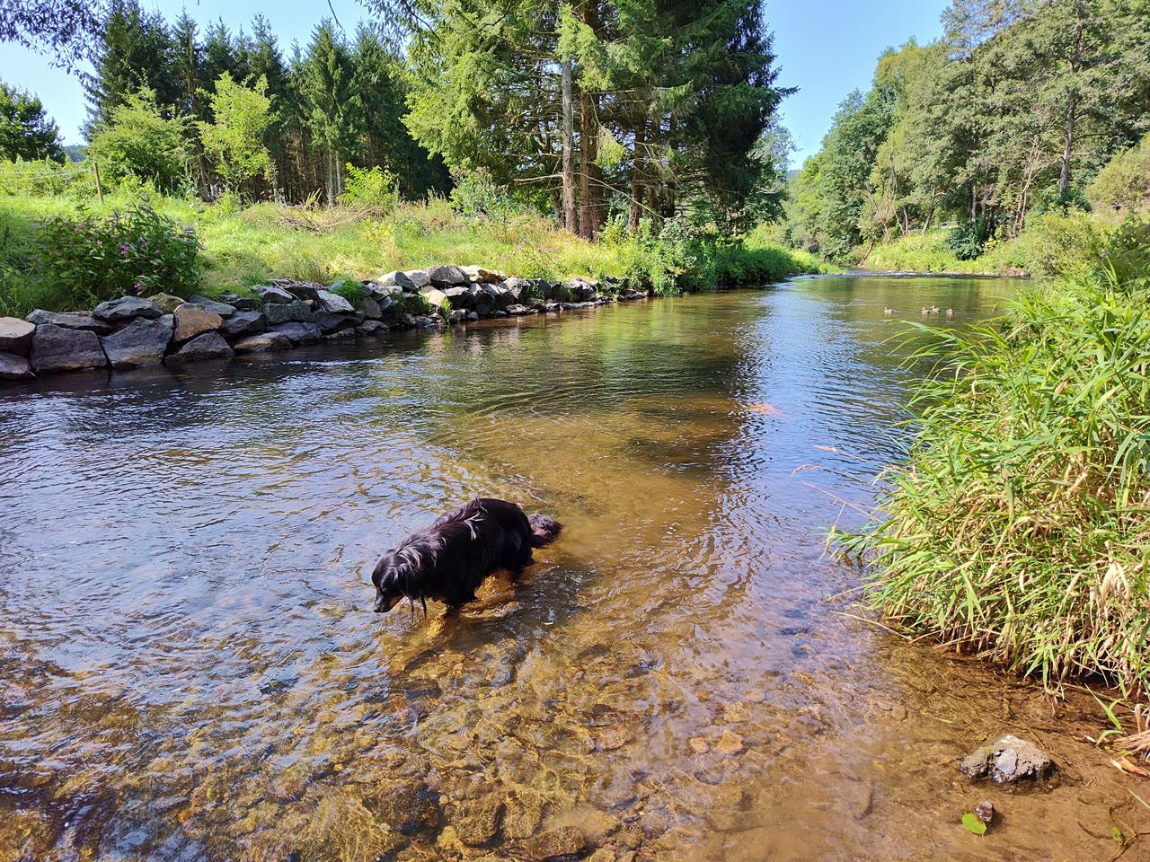 Hier kenne ich viele schöne Wanderwege, habe einen wunderbaren Blick aus dem Womo in den Kurpark und kann mit Doxi schön durch die Urft staksen.