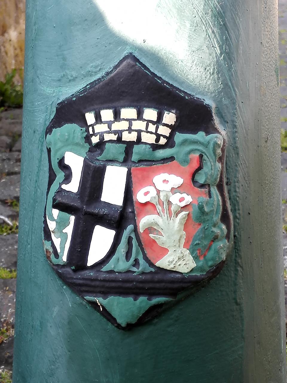 Stadtwappen auf dem Fuß einer Straßenlaterne