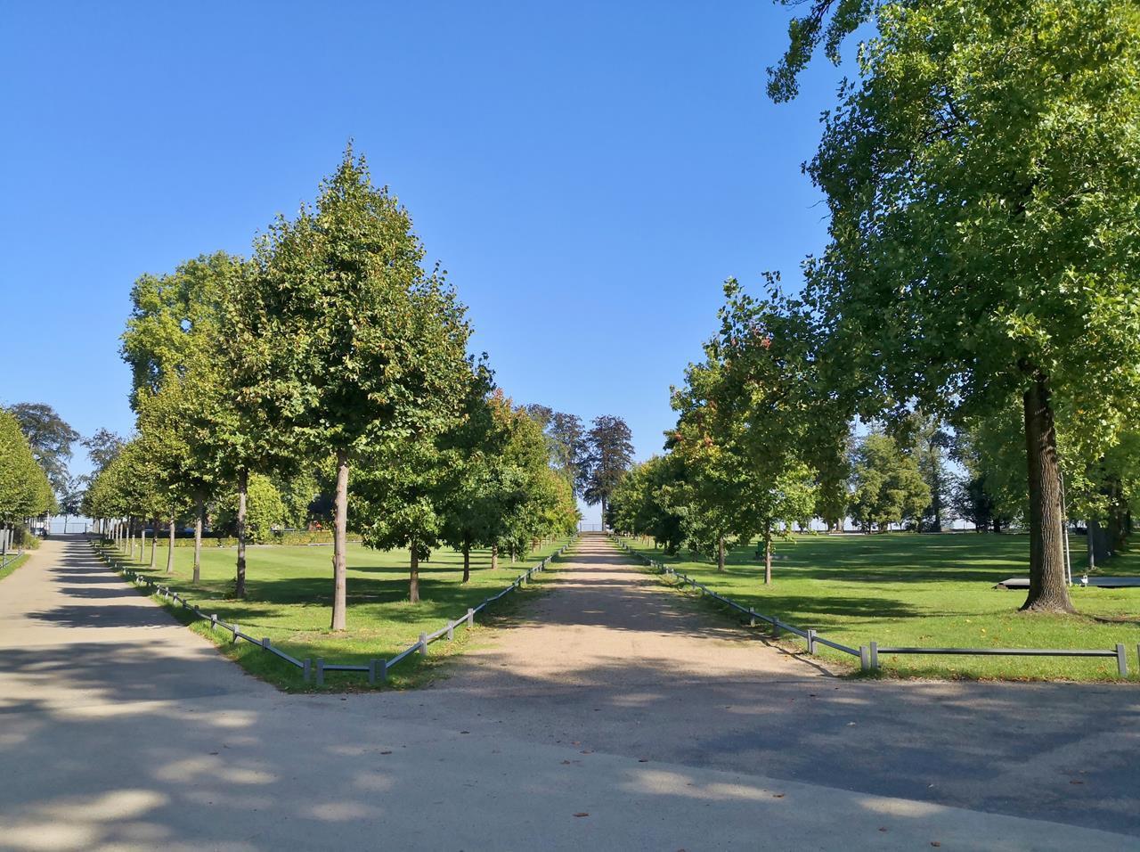 Weite Wiesen, sanft modellierte Hügel und Wasserflächen lassen ein liebliches Landschaftsbild entstehen und führen die Blicke immer wieder sanft zum Schloss. Zahlreiche Bänke, Liegestühle und zwischen Bäumen aufgespannte Hängematten laden die Parkbesucher zum Verweilen ein.
