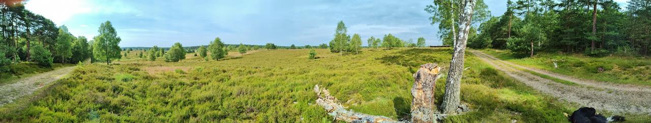 Ich mag Heidelandschaften, deshalb bin ich mit Doxi hier in der Lüneburger Heide genau richtig. Diesmal habe ich eine Wanderung bei dem kleinen Ort Wesel im nördlichen Bereich des Heidegebiets herausgesucht. Das Wetter ist heute nicht perfekt, aber egal.
