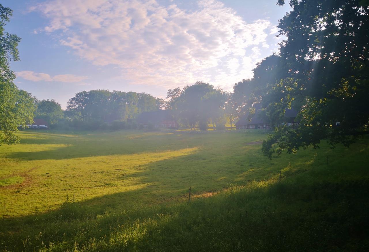 In einer Dreiecksrunde laufen wir am Abend durch die Heide zunächst nach Döhlen, dann weiter nach Wilsede und von dort wieder zurück nach Undeloh. Kurz hinter Wilsede liegt der Wilseder-Berg, mit 179 m.ü.N.N. die höchste Erhebung der Lüneburger Heide. Diesen haben wir auf unserer 17 Kilometer langen Wanderung aber leider verpasst.