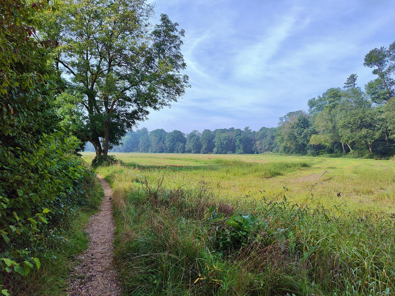 Zwischen Feldern und Obstplantagen geht es anschließend zum Gut Hombroich und entlang der Erft hinter der Museumshinsel Hombroich bis zum „Strategischen Bahndamm“, einem nie fertiggestellten Bauprojekt aus der Kaiserzeit.