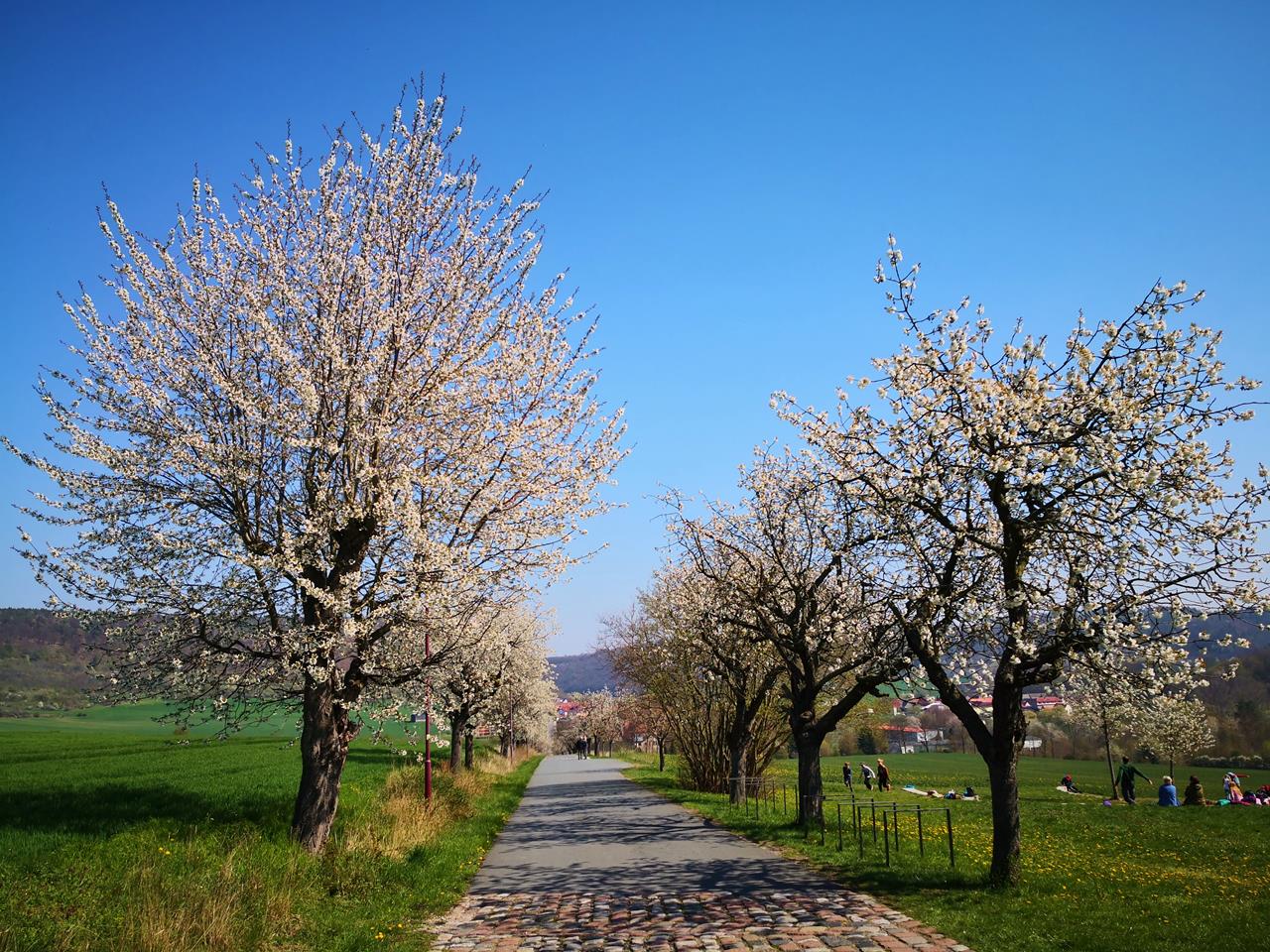 Allee mit Kirschbäumen hinauf zur Arche Nebra