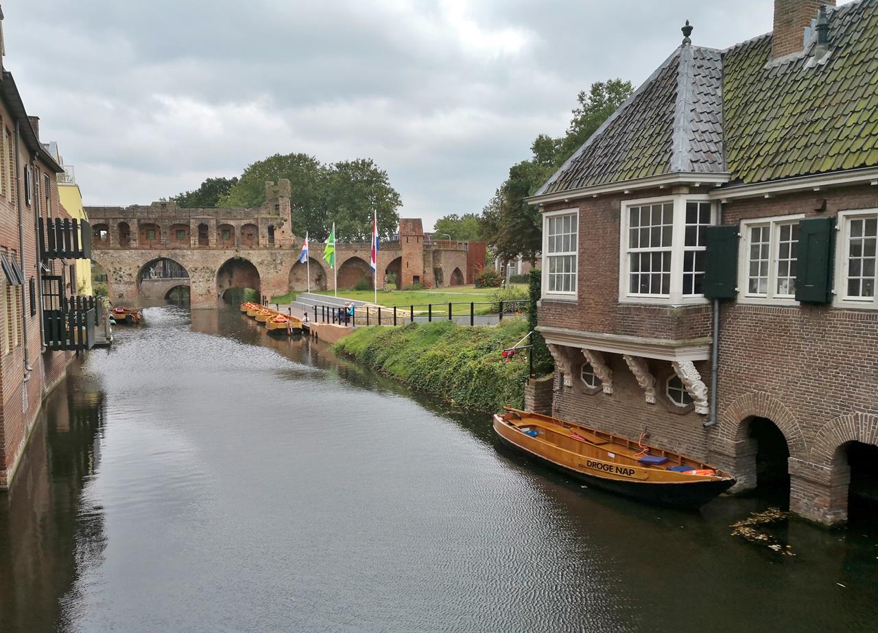 Unterwegs erfahren wir viel über die Geschichte der Stadt und lokale Besonderheiten. So etwa, dass das Wasser der Grachten nicht aus der Ijssel stammt, sondern aus der Berkel, die aus dem Münsterland kommt und hier bei Zutphen in die Ijssel mündet.Oder dass es am Rande des Zentrums schon im späten Mittelalter Sozialsiedlungen und Altersheime für die weniger Betuchten gab.