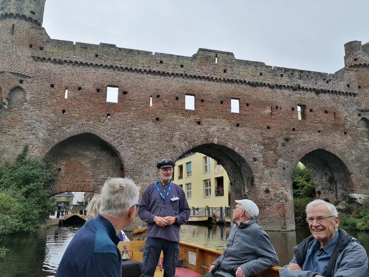 Am Nachmittag unternehmen wir eine schöne Bootsfahrt durch die Grachten von Zutphen. Für nur 6 Euro geht es fast 90 Minuten mit einem elektrisch angetriebenen Holzboot unter ortskundiger Führung eines Fährmanns durch die Stadt.