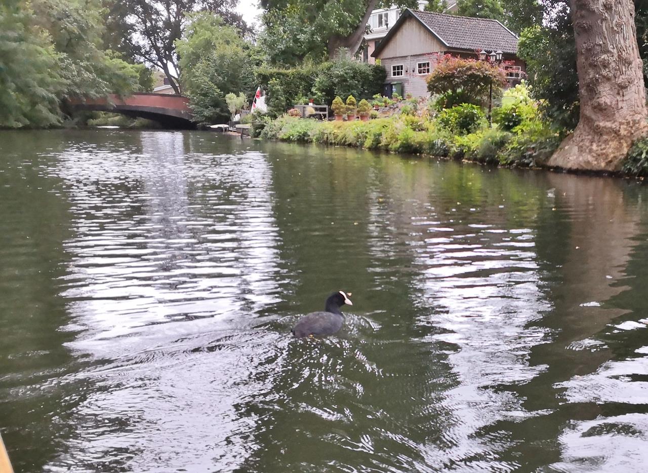 Wir unterqueren viele Brücken und müssen teils ordentlich den Kopf einziehen, was immer wieder zur allgemeinen Erheiterung beiträgt. Als dann zum Ende der Tour noch Nieselregen einsetzt, spannen wir den Schirm auf und kuscheln uns im Boot eng aneinander. So wird es noch gemütlicher …
