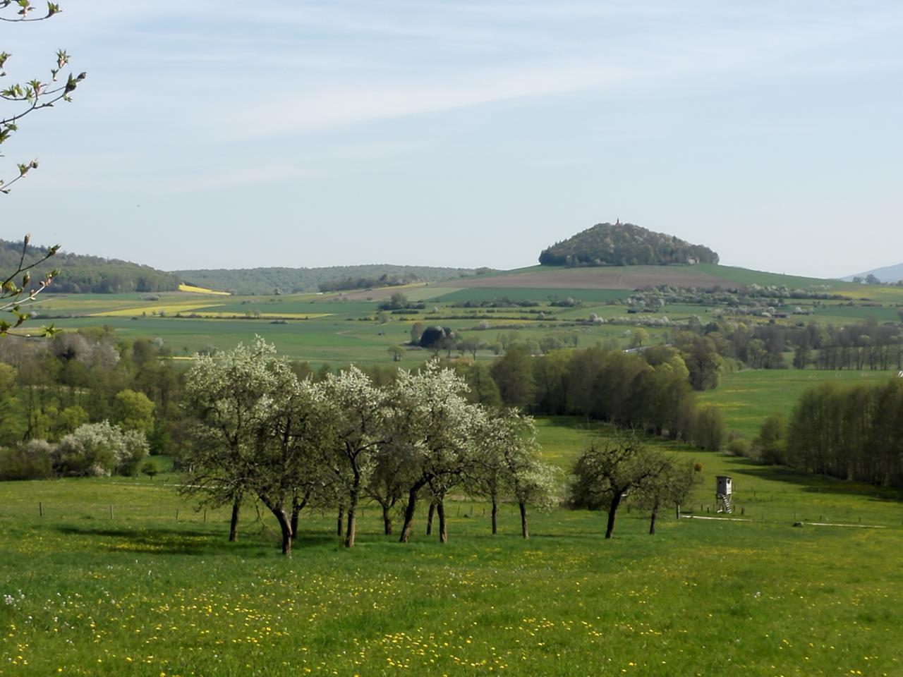 Heute Morgen sind wir ganz früh in Fulda Richtung Hünfeld aufgebrochen, weil es ein warmer Tag werden soll und mit 26 Km Länge eine anspruchsvolle Wanderung durch das „Hessische Kegelspiel“ vor uns liegt.