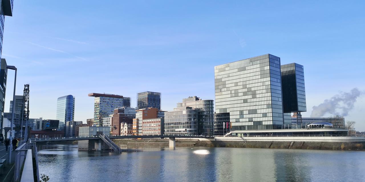 Blick in die Marina am Medienhafen gleich neben dem Landtag