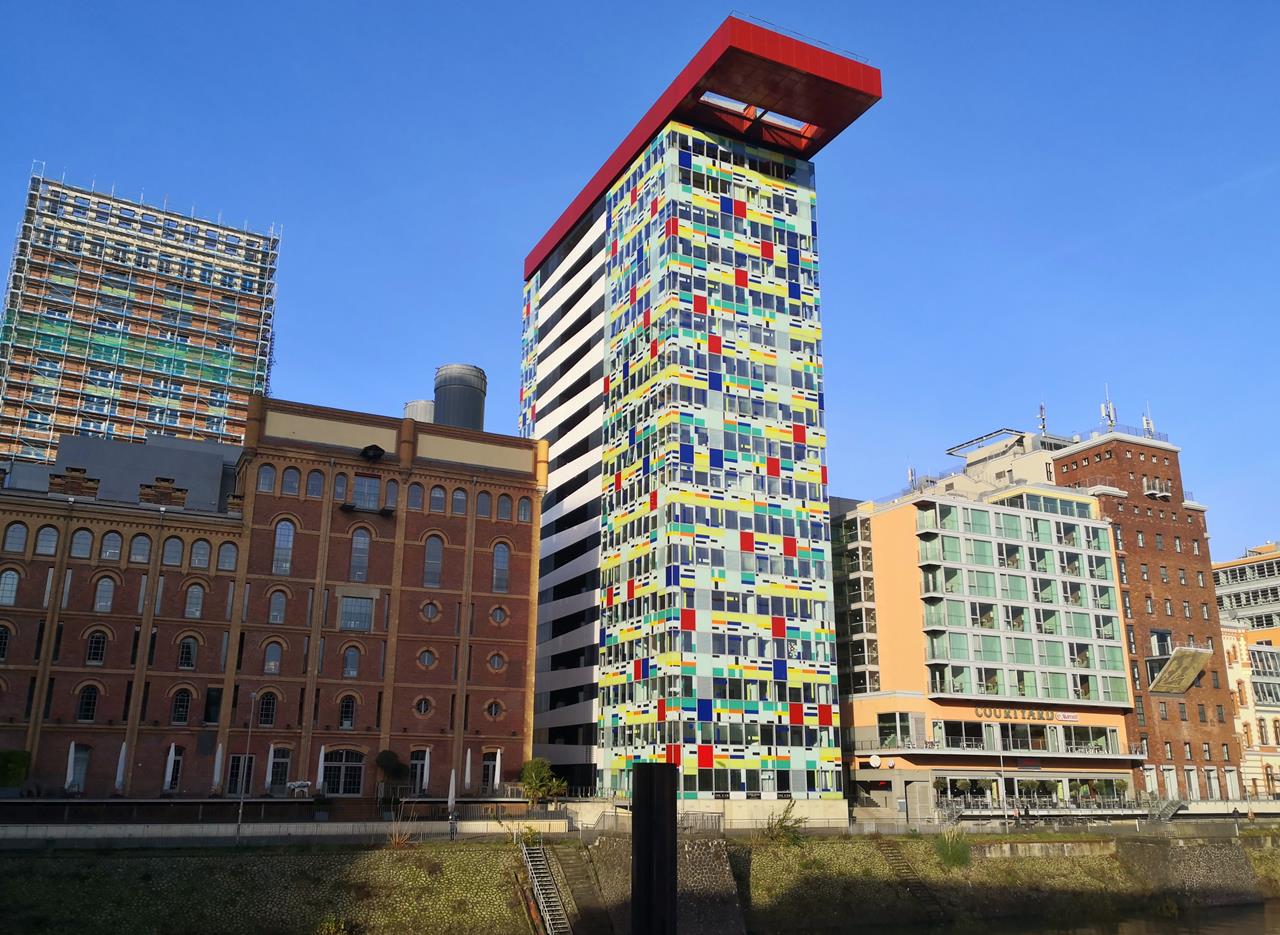 Der städtebaulich eindrucksvollste Teil von Düsseldorf ist ohne Zweifel der neue Medienhafen, der aus dem alten Güterhafen hervorgegangen ist. Neben dem Funkturm, dem Landtag und dem WDR-Funkhaus springen hier vor allem die ikonischen Gehry-Bauten und weitere farbenprächtige Neubauten in den Blick, in denen Büros und Hotels untergebracht sind. Von der Altstadt gelangt man über die Uferpromenade auf direktem Weg dorthin. Prädikat: Sehenswert.