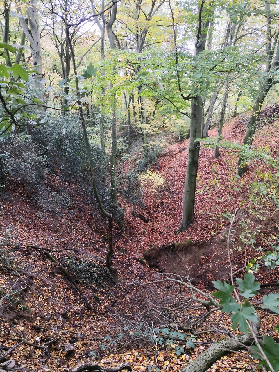 Hinter dem Schloss erreichen wir bald den Hildener Stadtwald und mit ihm die Rheinebene. Wir durchqueren den Wald in nördlicher Richtung und erreichen nach vier Stunden wieder unseren Ausgangspunkt nahe der Autobahn. Kaum sitzen wir im Auto, beginnt es zu regnen. Perfektes Timing also.