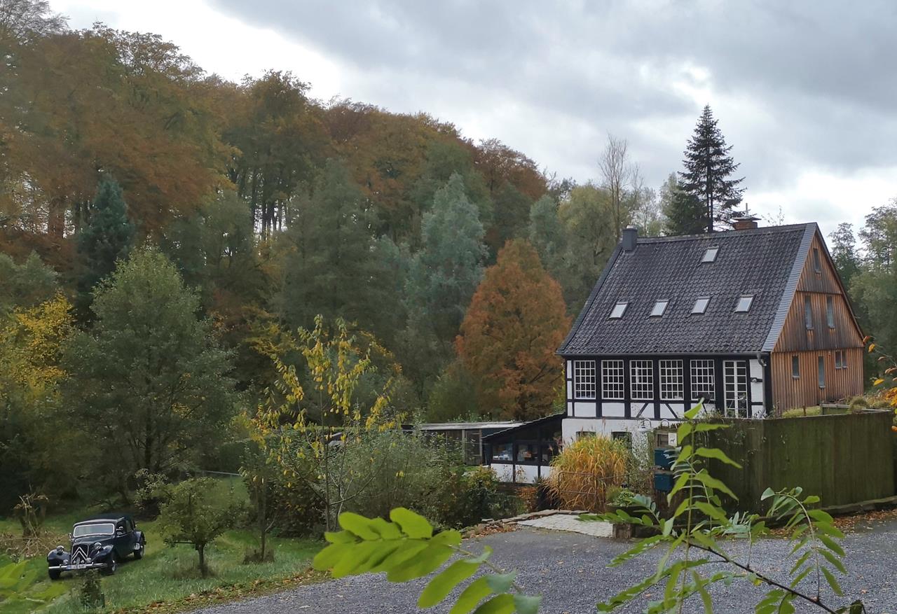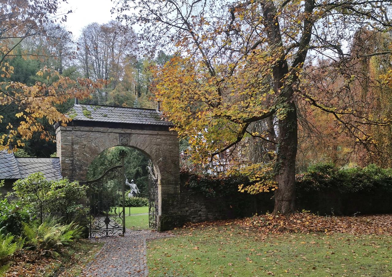 Herbstlich verwunschener Teich am Schloss Caspersbroich im Ittertal
