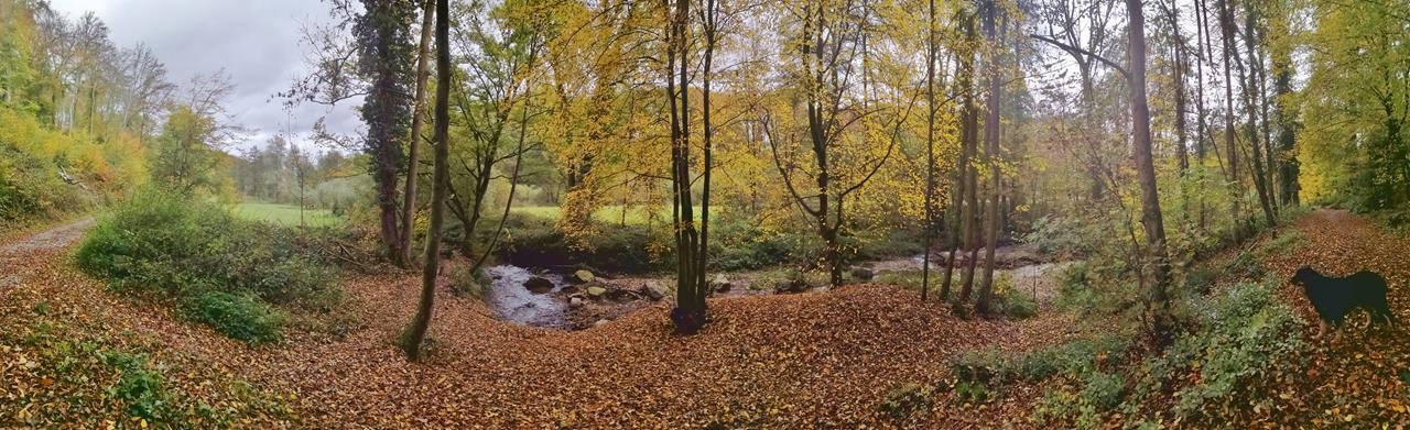 Gemeinsam mit meiner Wanderfreundin Gabi und der immer noch läufigen Doxi bin ich heute eine 16 km lange Tour rund um Haan gelaufen. Die Stadt liegt auf halber Strecke zwischen Düsseldorf und Wuppertal am Übergang vom Bergischen Land zur Niederrheinischen Bucht.